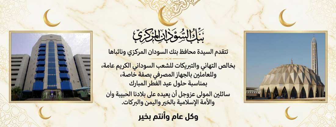 السيدة آمنة ميرغني حسن التوم – محافظ بنك السودان المركزي والسيد المعتصم عبدالله احمد الفكي النائب الأول للمحافظ والسيد د. سامي عبدالحفيظ صالح – نائب المحافظ يتقدمون بالتهنئة للعاملين بالبنك المركزي و الجهاز المصرفي بمناسبة حلول شهر رمضان المبارك  أعاننا الله واياكم على الصيام والقيام وصالح الاعمال وكل عام وأنتم بخير